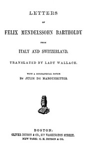 Letters of Felix Mendelssohn Bartholdy from Italy and Switzerland